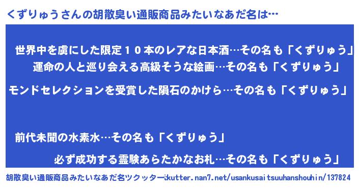 | ヒーロー風カッコイイあだ名 | 『天空の使者くずりゅう』『仮面クズダー』 |