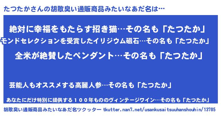 | ヘコむあだ名 | 『たつっちょ』『たつたか(笑)』 |