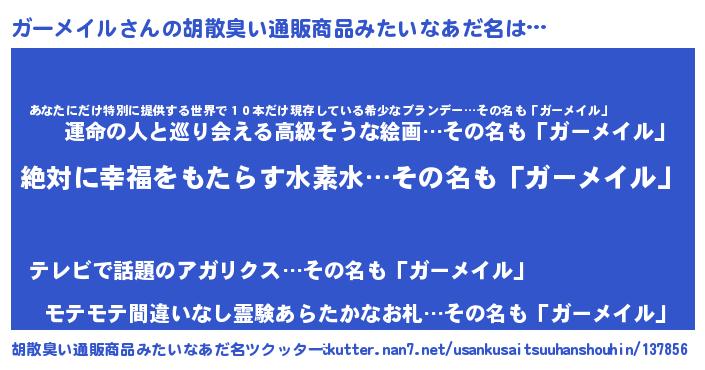 | 意味不明あだ名 | 『永久保存ガーメイル』『自称ガーメイル』 |