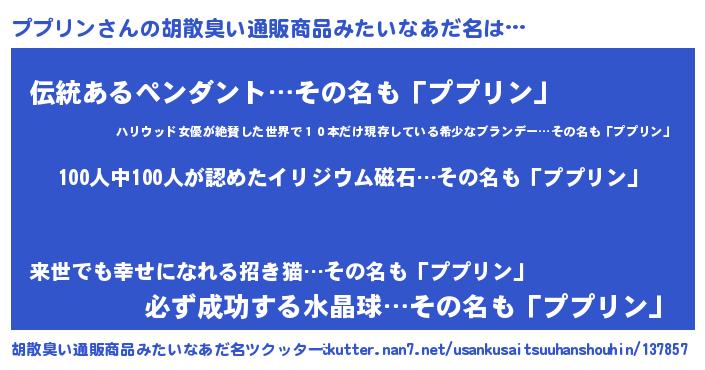| ヒーロー風カッコイイあだ名 | 『正義の使者ププリン』『魔戒騎士ププ』 |