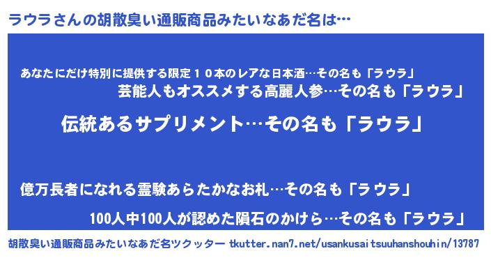 | ヘコむあだ名 | 『ラウお』『ラウにゅー』『豆乳』 |