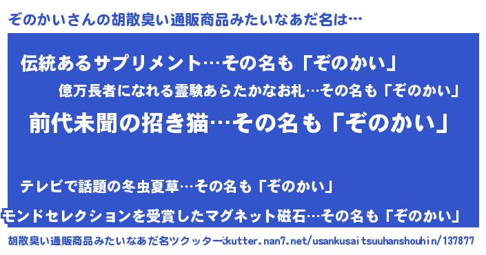 | 意味不明あだ名 | 『永久保存ぞのかい』『ペロリンぞのかい』 |