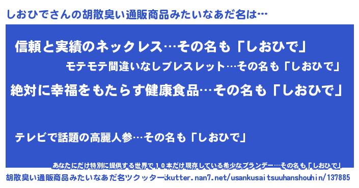 | ヘコむあだ名 | 『しおひで(笑)』『しおお』 |