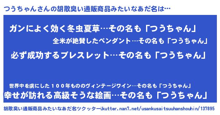 | ヒーロー風カッコイイあだ名 | 『スーパーツウチャン』『魔戒騎士ツウ』 |