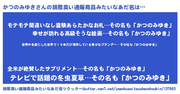 | 意味不明あだ名 | 『住所不定無職かつのみゆき(86歳)』 |