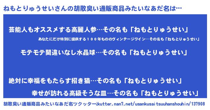 | 恥ずかしいあだ名 | 『プリティーねもとりゅうせい』 |