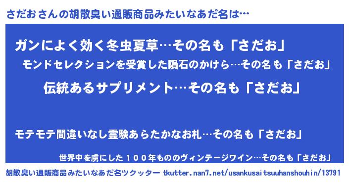 | 意味不明あだ名 | 『とにかく怪しいさだお』『自称さだお』 |