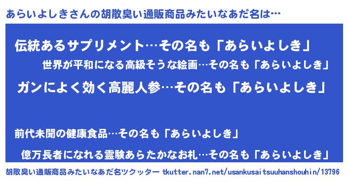 | ヘコむあだ名 | 『あらを』『あらにー』『なまこ酢』 |