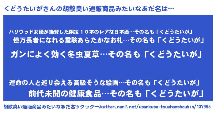 | 意味不明あだ名 | 『自称くどうたいが』 |
