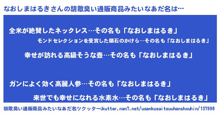 | 意味不明あだ名 | 『なおしまはるきフォーエバー』 |