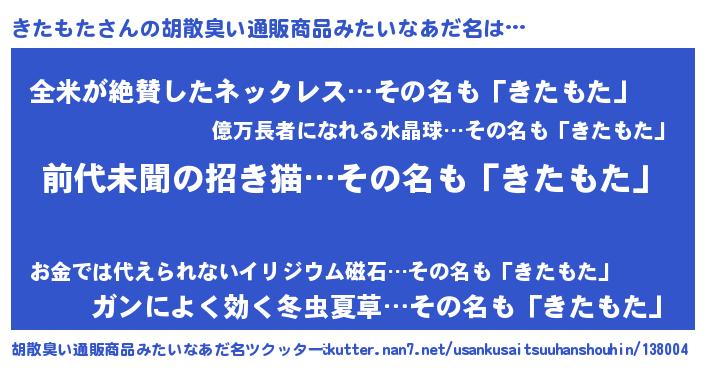 | 意味不明あだ名 | 『永久保存きたもた』『自称きたもた』 |