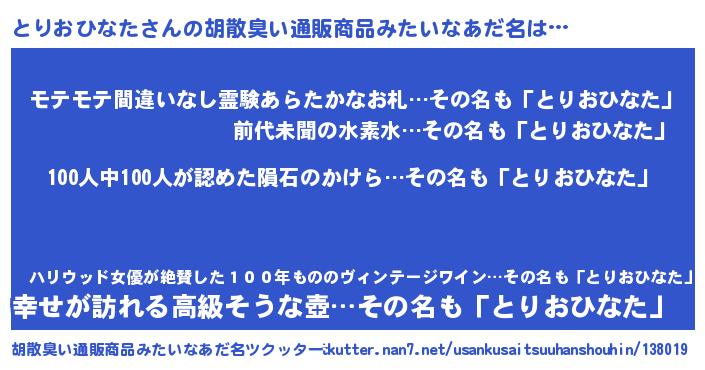 | 欧米人風あだ名 | 『トリンドルとりおひなた』 |