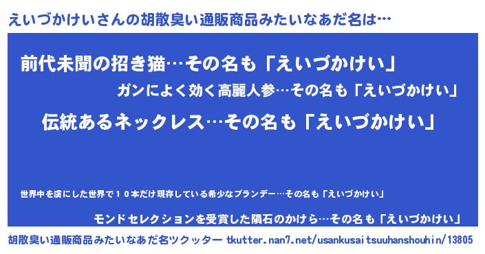 | ヘコむあだ名 | 『えいっ子』『えいづかけい(笑)』 |