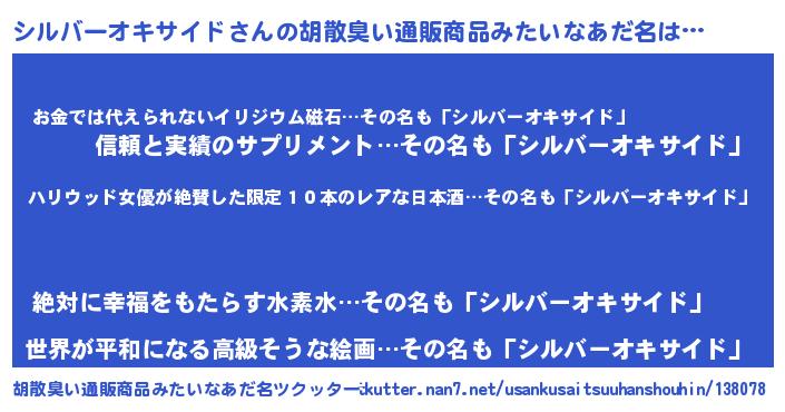 | 男性向けラノベタイトル風あだ名 | 『シルバーオキサイドスレイヤー』 |