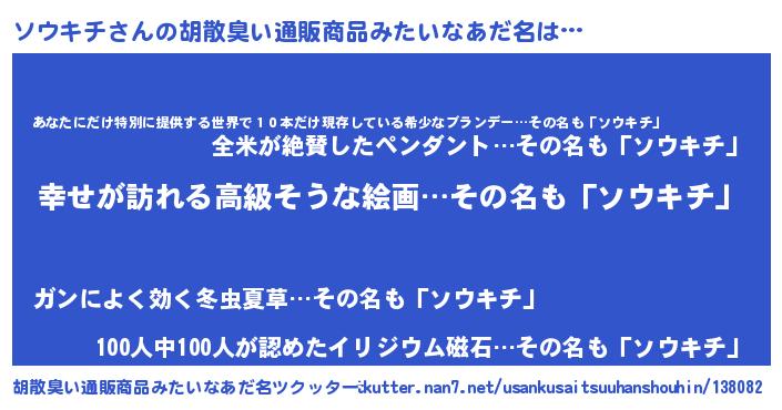 | 意味不明あだ名 | 『ソウキチフォーエバー』 |