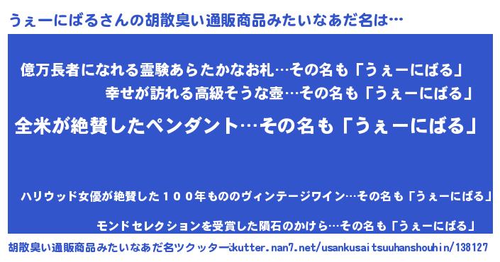 | 意味不明あだ名 | 『とにかく怪しいうぇーにばる』 |