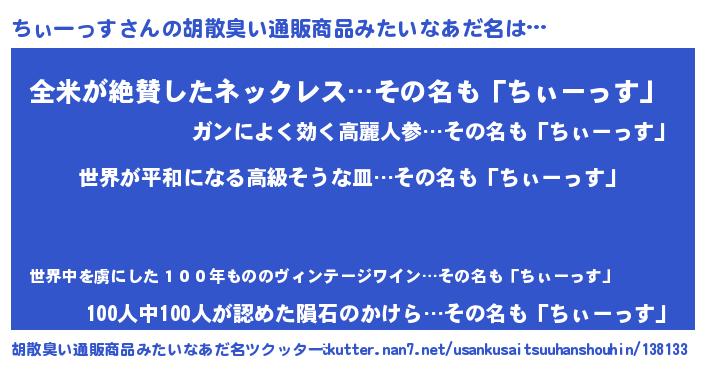 | 意味不明あだ名 | 『ちぃーっすフォーエバー』 |