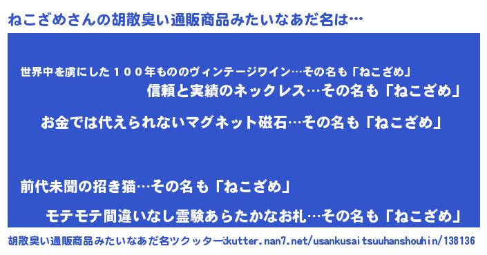 | 意味不明あだ名 | 『眠気覚ましガムねこざめ味』 |