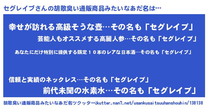 | 意味不明あだ名 | 『住所不定無職セグレイブ(43歳)』 |