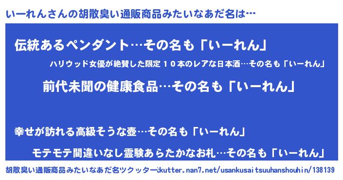 | ヘコむあだ名 | 『いーれん(笑)』『いーっぺ』『豆乳』 |