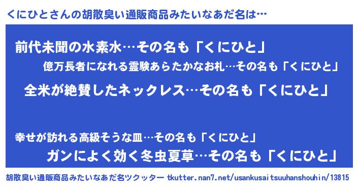 | ヘコむあだ名 | 『くにっぺ』『くにひと(爆)』 |