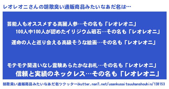 | ヘコむあだ名 | 『酢こんぶ』『レオぷりん』 |