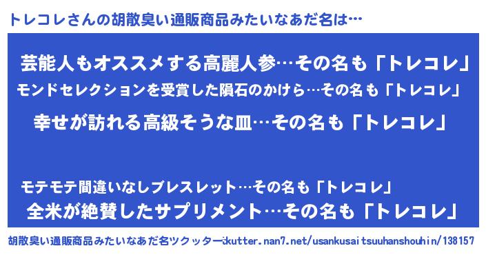 | 恥ずかしいあだ名 | 『トレっちょ』『トレコレデラックス』 |