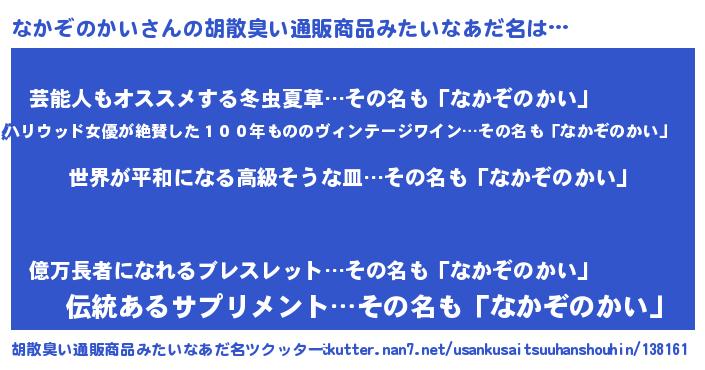 | 意味不明あだ名 | 『なかぞのかいフォーエバー』 |