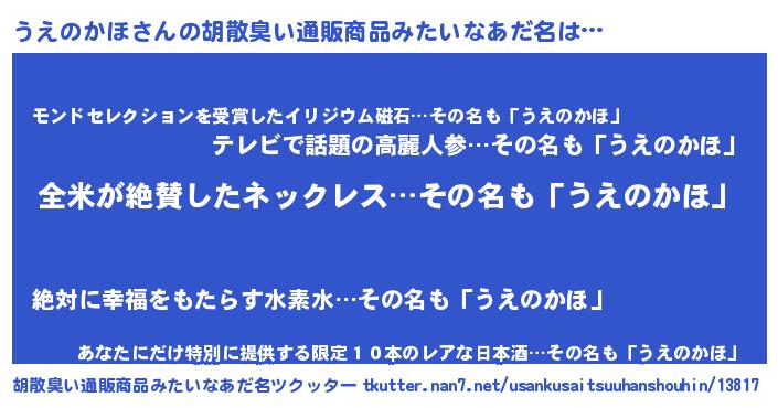 | 恥ずかしいあだ名 | 『ウエリンリン』『ボンバーヘッドうえ』 |