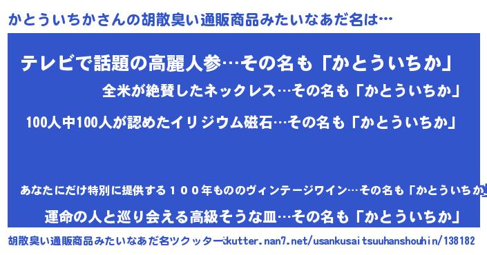 | 男性向けラノベタイトル風あだ名 | 『緋弾のカトウイチカ』 |