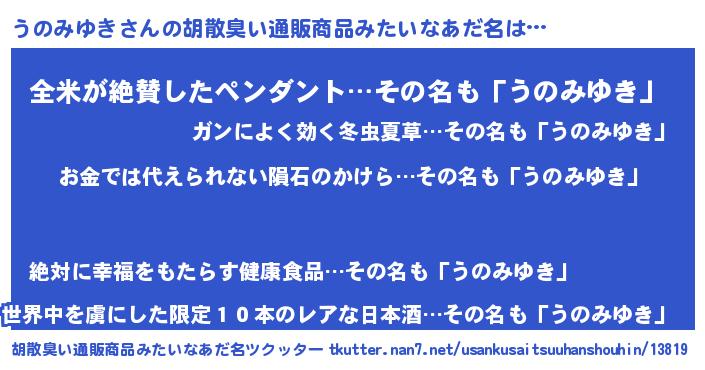| ヘコむあだ名 | 『うのっちょ』『うのみゆき(遠い目)』 |
