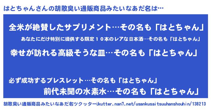 | ヒーロー風カッコイイあだ名 | 『ウルトラはとちゃんマン』 |