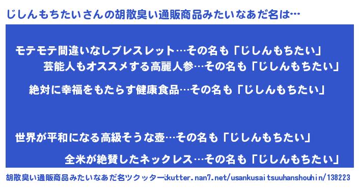 | 意味不明あだ名 | 『永久保存じしんもちたい』 |