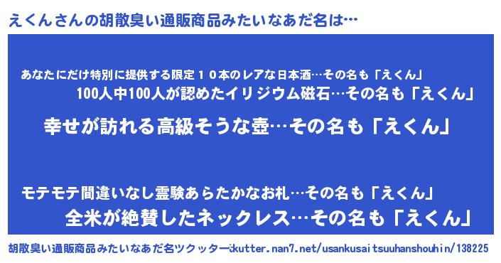 | 男性向けラノベタイトル風あだ名 | 『エクンスレイヤー』『魔弾の王とえくん』 |