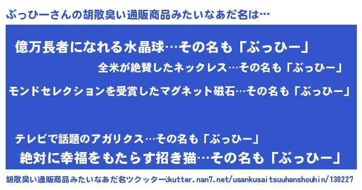 | ヘコむあだ名 | 『ぶっにー』『ぶっひー(笑)』 |