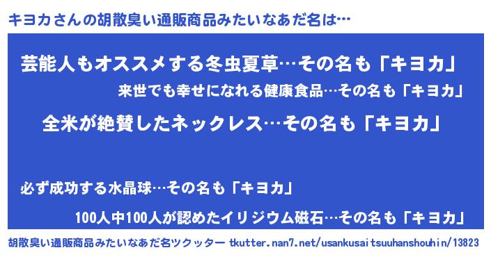 | 意味不明あだ名 | 『とにかく怪しいキヨカ』『自称キヨカ』 |