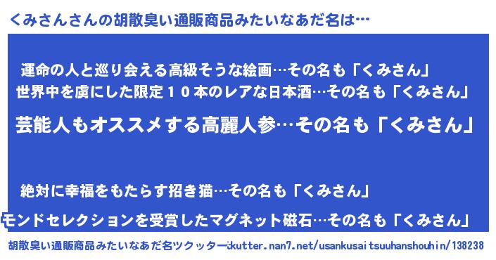 | 意味不明あだ名 | 『自称くみさん』『くみさんフォーエバー』 |