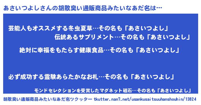 あさいつよしさんの胡散臭い通販商品みたいなあだ名をツクッター!