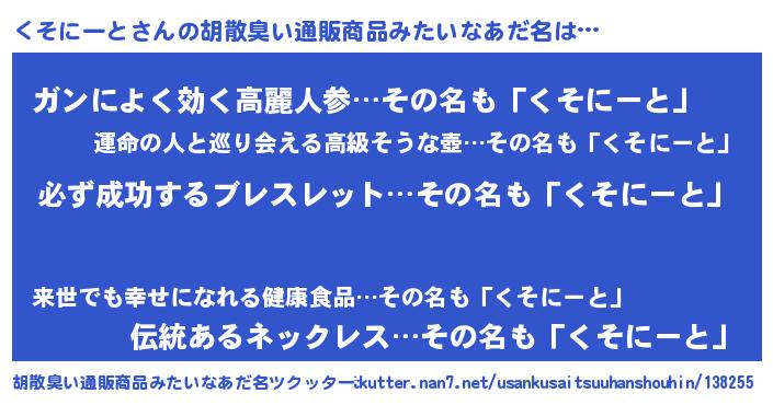 くそにーとさんの胡散臭い通販商品みたいなあだ名をツクッター!