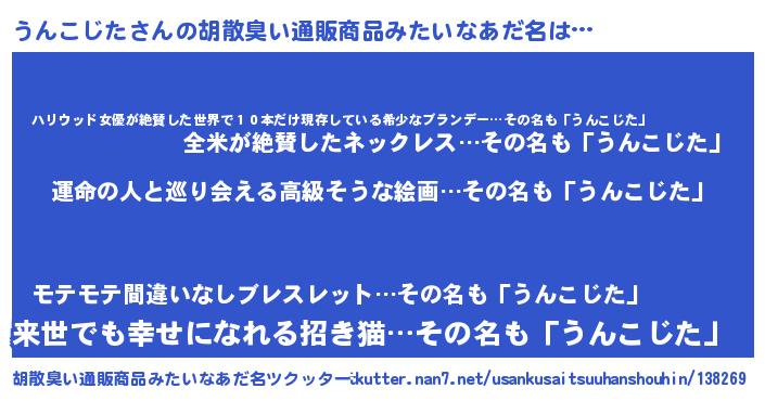 | 男性向けラノベタイトル風あだ名 | 『うんこじたに滅ぼされるだけの簡単なお仕事です』 |