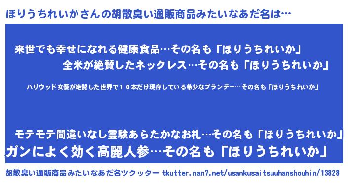 | 意味不明あだ名 | 『住所不定無職ほりうちれいか(98歳)』 |