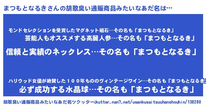 | ポケモン風あだ名 | 『マツゴンZ』『ヒマツモトナルキ』 |