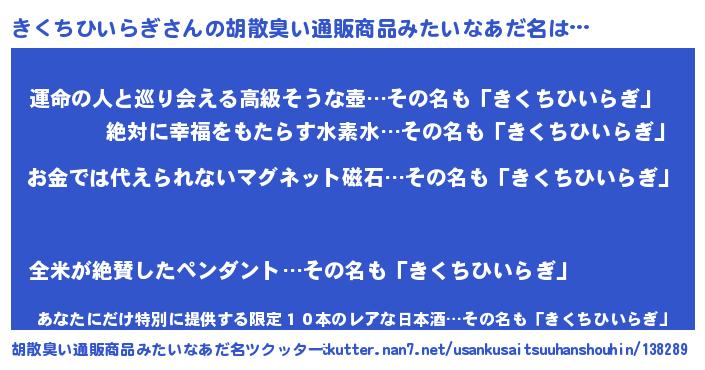 | ヘコむあだ名 | 『豆乳』『きくちひいらぎ(爆)』 |