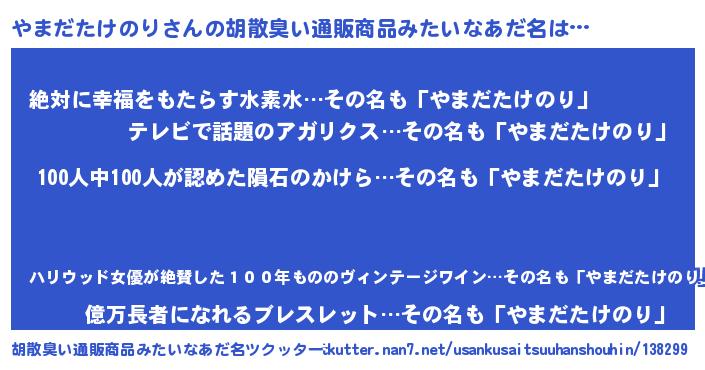 | ヘコむあだ名 | 『やまだたけのり(遠い目)』『やまっふぃ~』 |