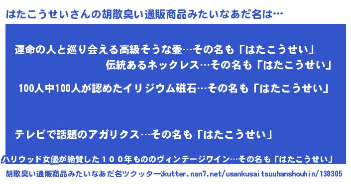 | ヘコむあだ名 | 『牛乳』『はたっぺ』『はたにー』 |