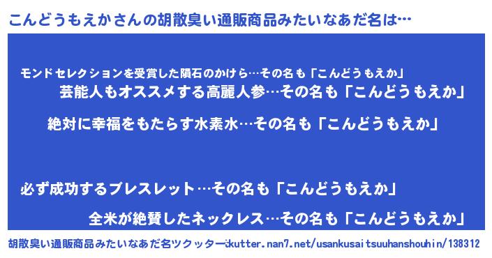 | 意味不明あだ名 | 『永久保存こんどうもえか』 |