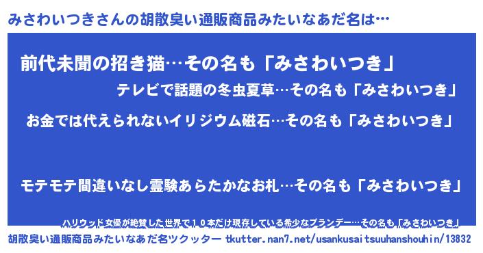 | 肩書あだ名 | 『みさわいつき少将』『みさわいつき教授』 |