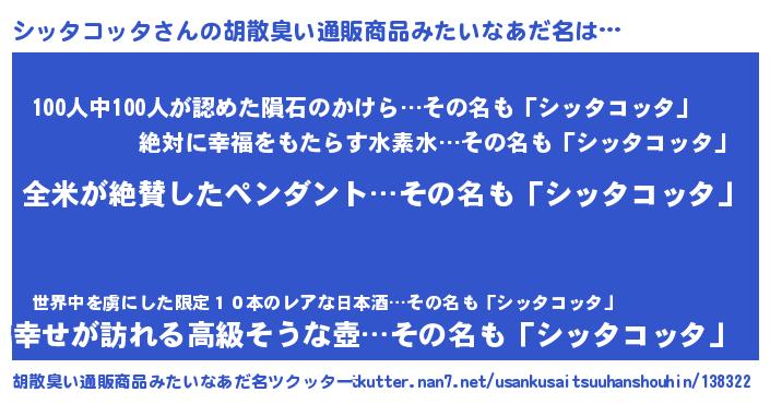 | 意味不明あだ名 | 『とにかく怪しいシッタコッタ』 |