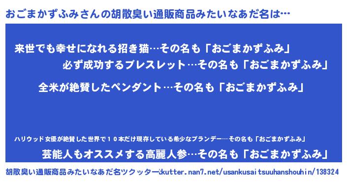 | 意味不明あだ名 | 『ヨモギ科おごまかずふみ属』 |