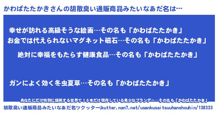 | 意味不明あだ名 | 『永久保存かわばたたかき』 |